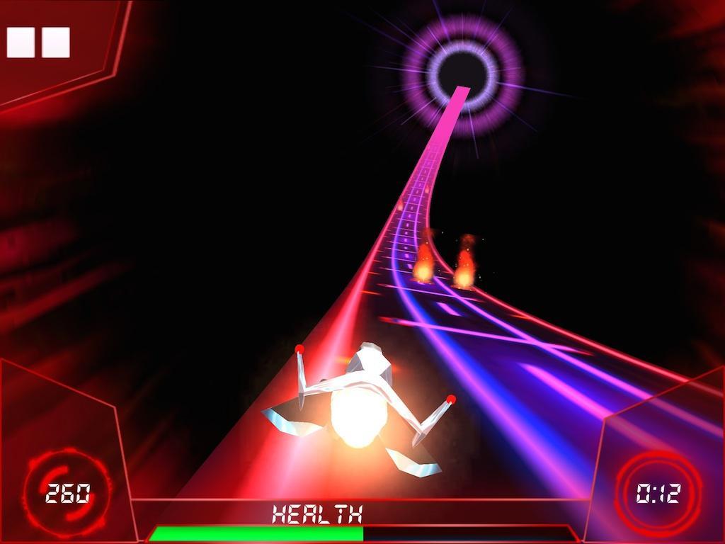 Race against your own beats as you ride along the spaceship- experience real adrenaline rush as you hurtle along fluidly!