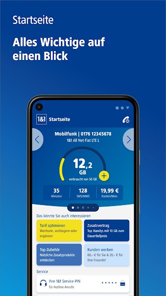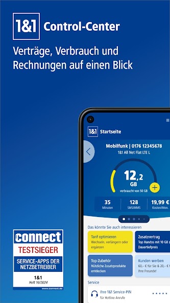 مع تطبيق مركز التحكم 1 و 1 ، يمكنك استخدام جميع مزايا منطقة العميل الشخصية على هاتفك الذكي أو الجهاز اللوحي - في أي مكان لديك الوصول إلى الإنترنت. راقب دائمًا استهلاك البيانات الخاص بك ، ودقائق مكالمتك والتكاليف المتكبدة. على سبيل المثال ، عرض بيانات العميل والفواتير الخاصة بك ، وتوسيع العقد الخاص بك ، أو إرشادنا لتنفيذ رقم هاتفك أو نقل اتصال الإنترنت الخاص بك. تعرّفات وإجابات مفيدة على الأسئلة التي يتم طرحها بشكل متكرر ستدعمك بعقدك وجميع المنتجات 1 & 1!
