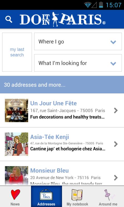 التطبيق المثالي لل parisiennes! خذ معك أحدث الحانات والمطاعم وعناوين التسوق والجمال التي التقطها فريق doitinparis.com واكتشف الأماكن التي لا تضيع في أي مكان في باريس وحول العاصمة.