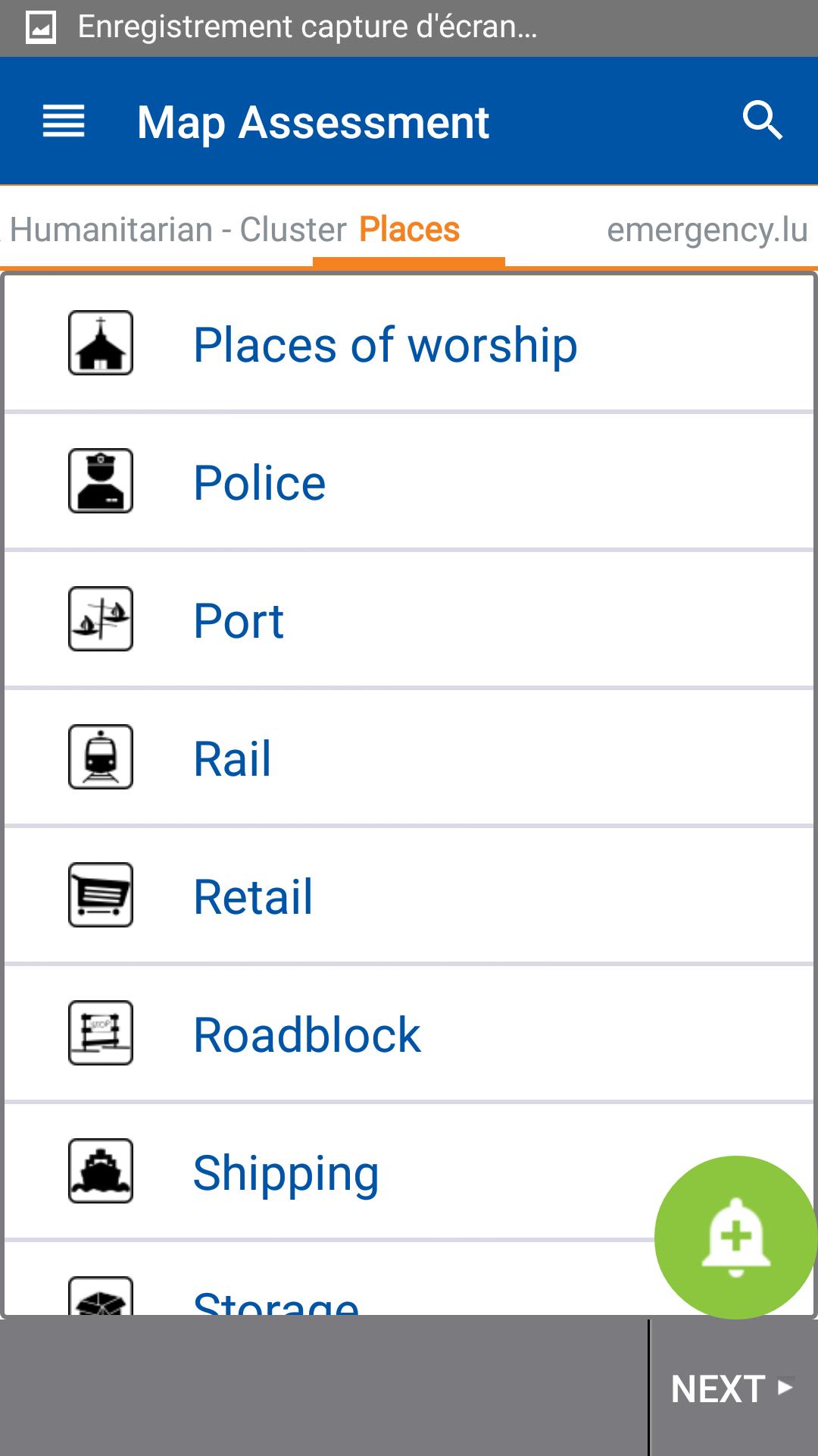 - تقييم الخريطة عبر مكتبات POI (Ocha ، Emergency.lu).