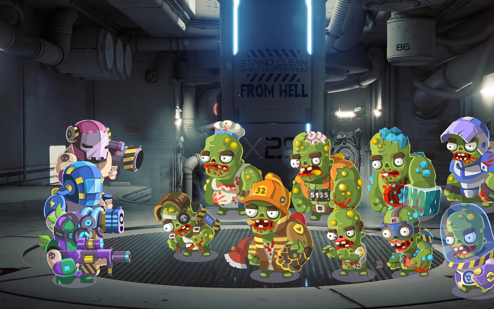- 9 نوع من الزومبي مع قدرة مختلفة (وحدة التجميد ، قاذفة الانتحار ...)