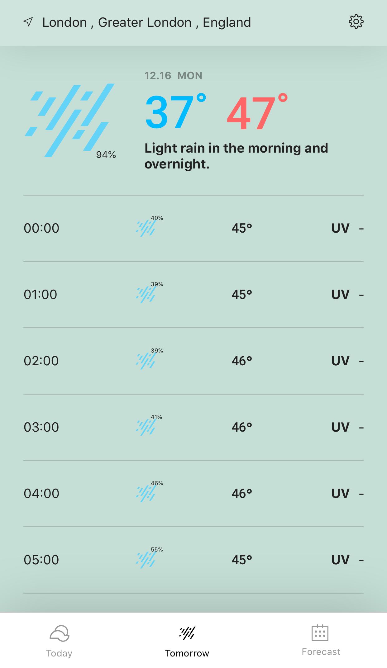 التبديل بسرعة اليوم ، غدًا وتوقعات الطقس في الأسبوع عن طريق تمرير اليسار واليمين. ما عليك سوى التمرير لأعلى ولأسفل لتصفح الطقس بالساعة أو اليومية.