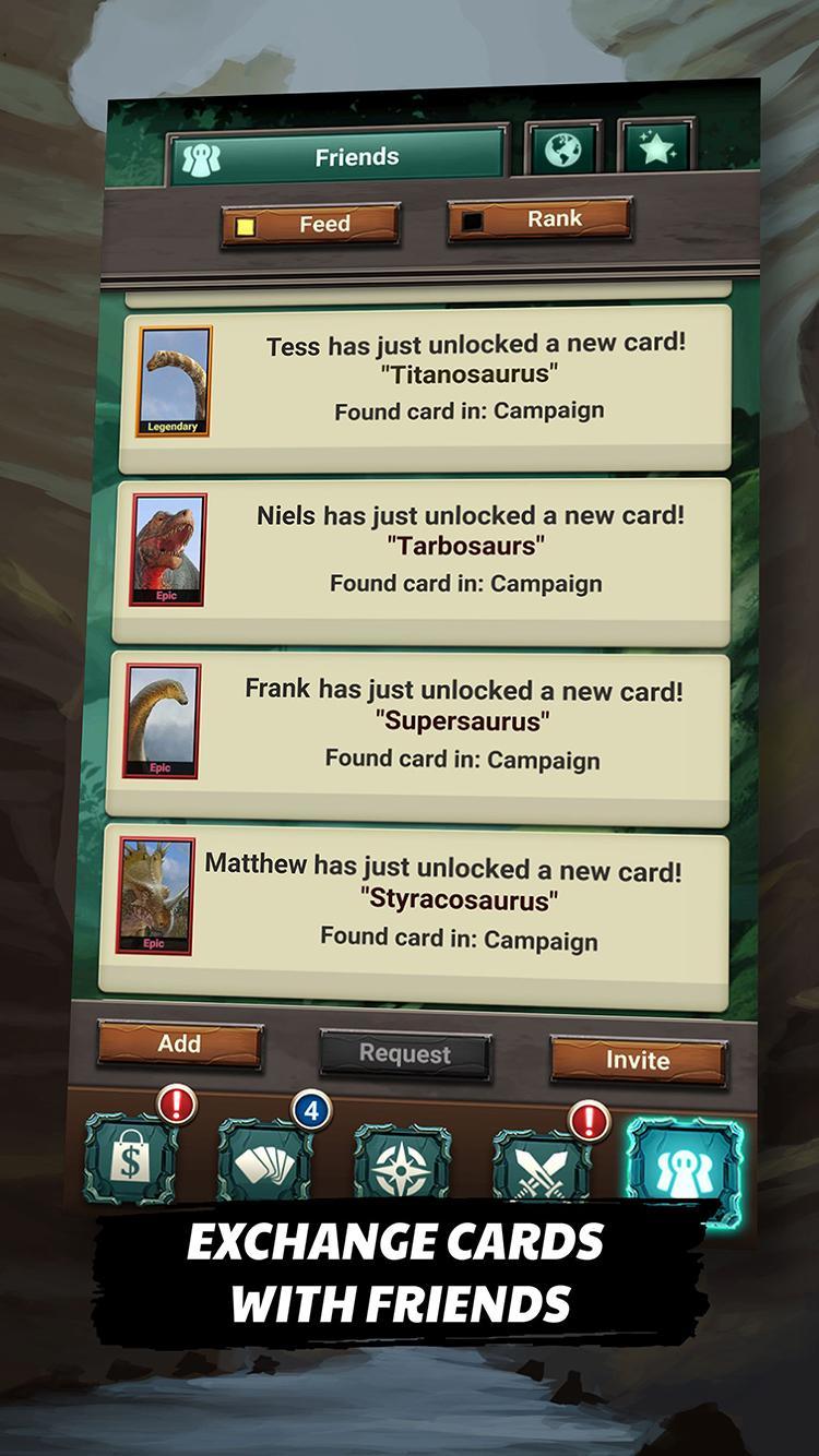 القتال مع بطاقات الديناصورات القوية التي تعود إلى ما قبل التاريخ ، وجمع الحيوانات آكلة اللحوم الرائعة والهاوية ، وتطور مخلوقات الدينو المتوسطة ، وفتح مجموعة واسعة من الديناصورات سيئة السمعة ، مثل T-Rex Mighty ، Triceratops ، العديد من الدينوسات الرابتور ، Spinosaurus ، Brachiosaurus و ankylosaurus.