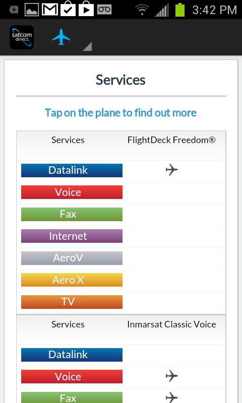 يحتوي تطبيق Satcom Direct Corporate على منتجات المنتج والخدمة SD.