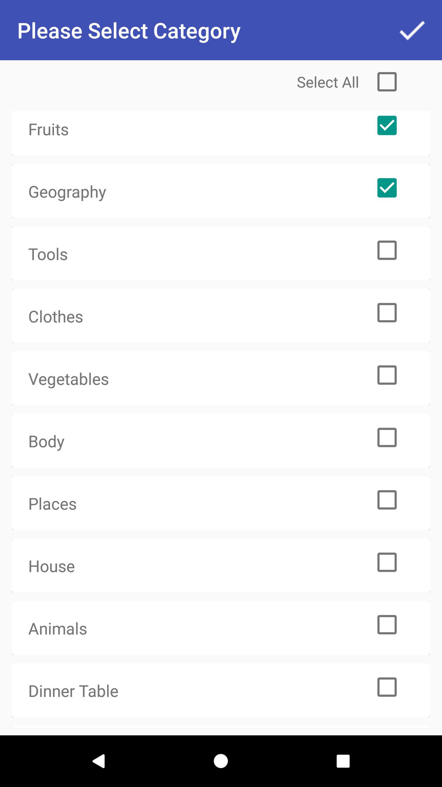 1. حدد فئة كلمة (خضار ، أدوات وما إلى ذلك)