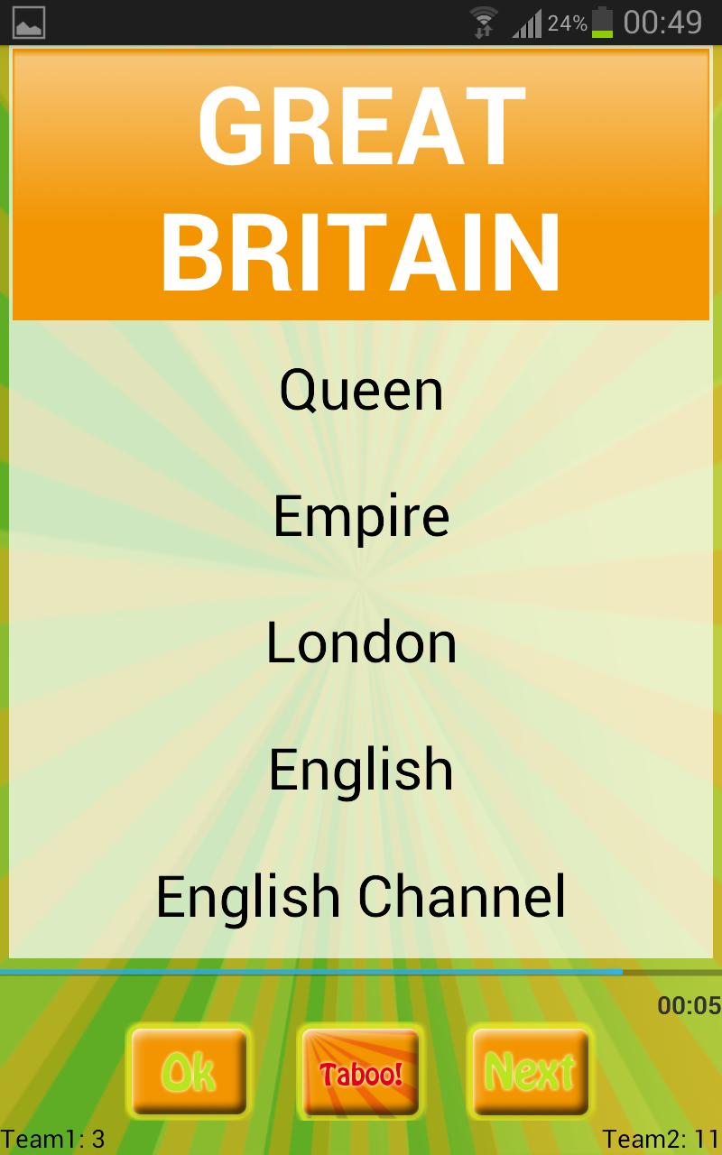 تعبت من حمل مجموعة من البطاقات ، واستخدم مؤقتًا وتسجيل النقاط باليد؟ حسنا ، Tabooing! هو التطبيق لك! العب مع أصدقائك في هذه اللعبة الممتعة أمر سهل للغاية.