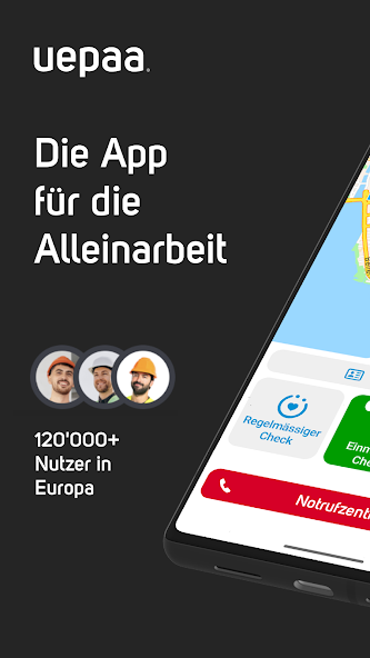 يقوم تطبيق UEPAA بتحويل هاتفك الذكي إلى جهاز طوارئ شخصي (PNA)-الحماية المهنية للفريق والعمل الوحيد (وفقًا لـ SUVA-44094 و DGUV).