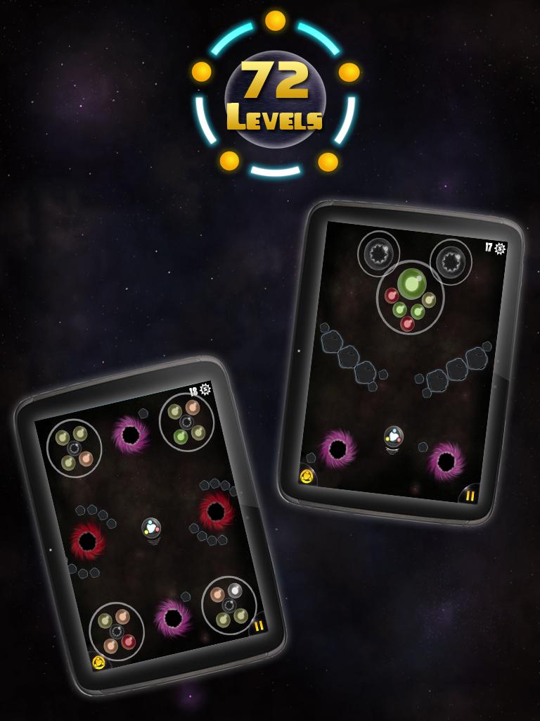 72 LEVELS! In 4 galaxies where you will find a variety of marbles, asteroids, nebulas, black holes and worm holes!