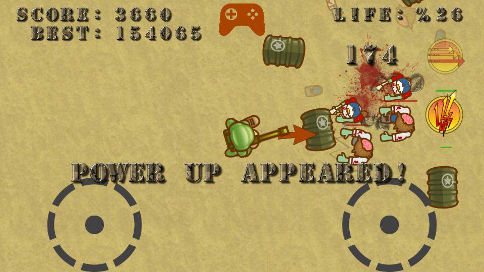 Simple rules but hard to master. Move your soldier and shoot every zombie that you see. Collect and activate powerups to improve killing zombies but do it wisely!
