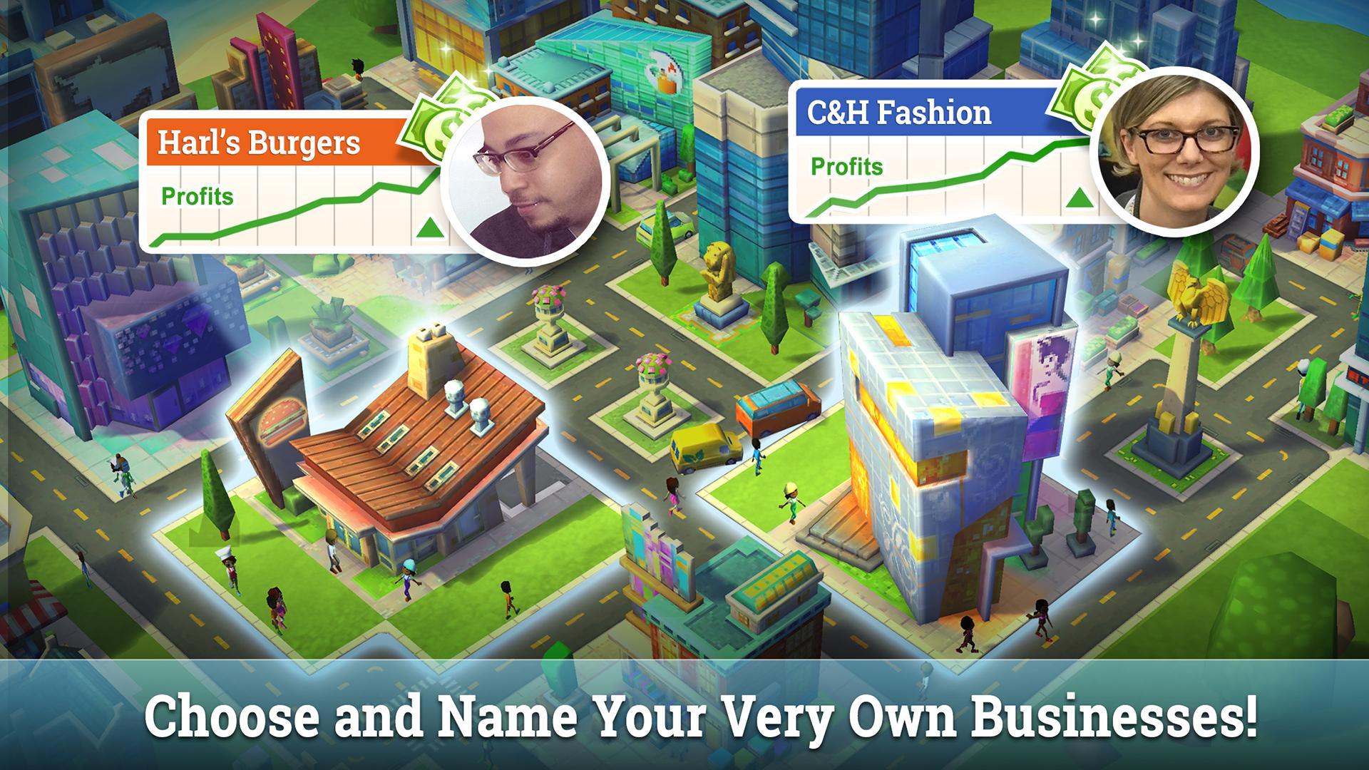 You become part of your city! You’ll get to choose, build and name your very own businesses like coffee shops, burger joints, books stores, fashion boutiques and more that will help you expand your city. You can even open up your businesses in other player’s cities to earn more rewards.