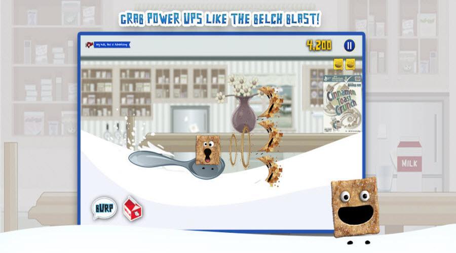 The object of the game is to have a smooth run and have fun (while licking and chomping Cinnamon Toast Crunch along the way). Power Ups will help move you faster. Any bumps, stumbles, licks or spills will slow you down. Just don’t let them slow you enough to get eaten!