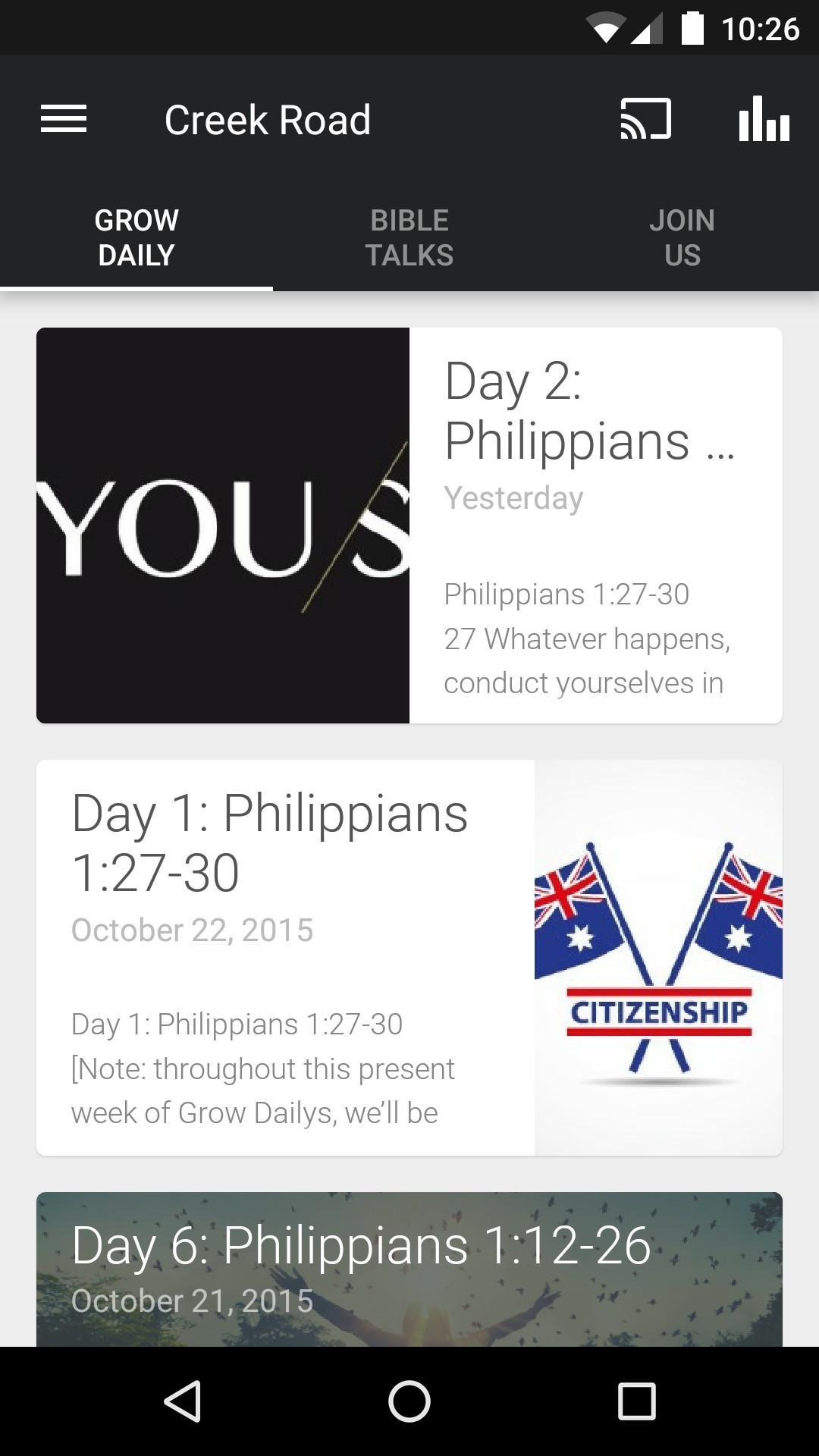 Bible Talks, Grow Daily and other resources from Creek Road.