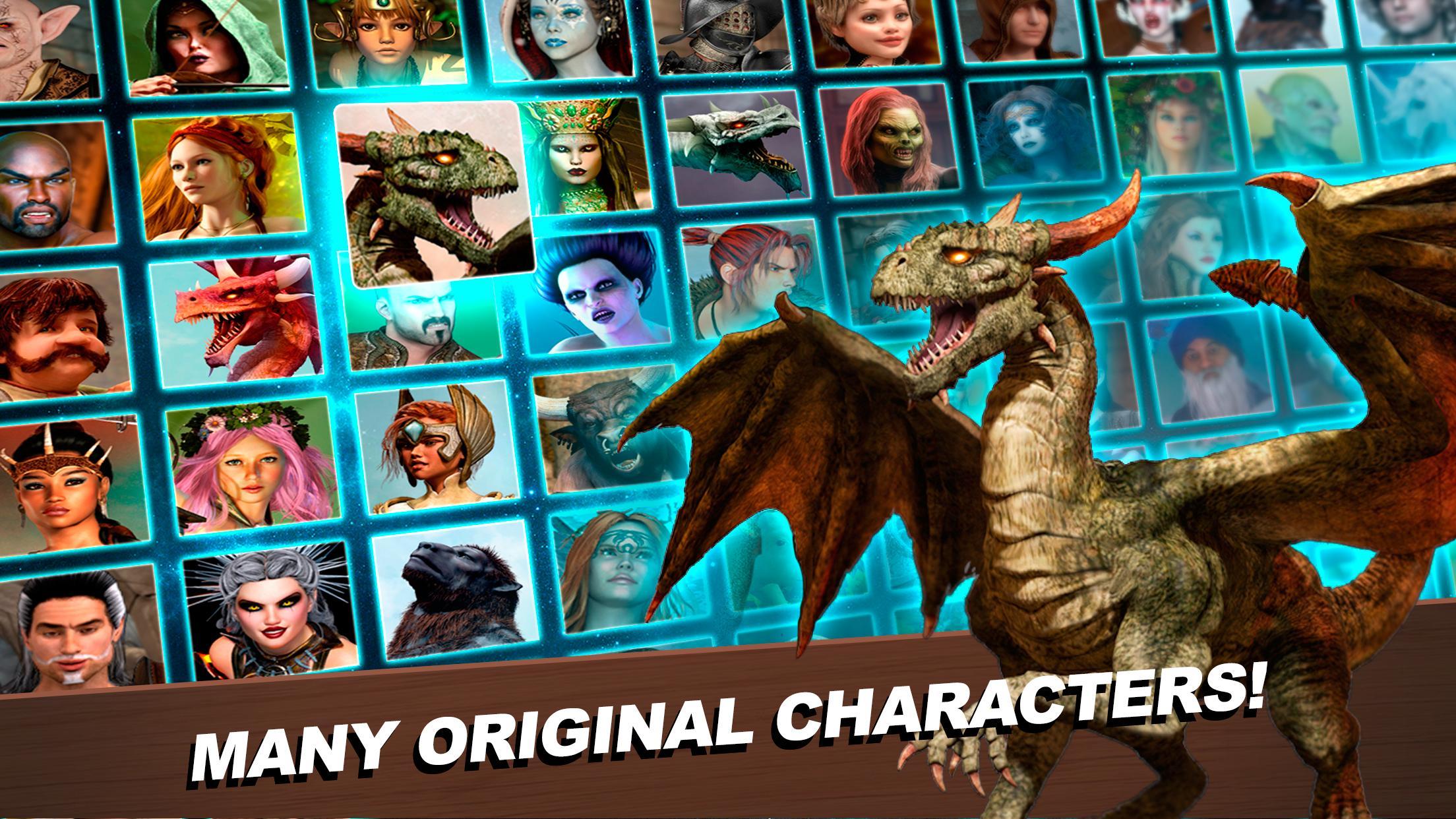 - Sammeln Sie eine Sammlung von Hunderten von Charakteren: Götter, Drachen, Magier, Monster, alte Helden von Schwert und Magie, Gnomen, Feen, magische Kreaturen und unsichtbare Kreaturen