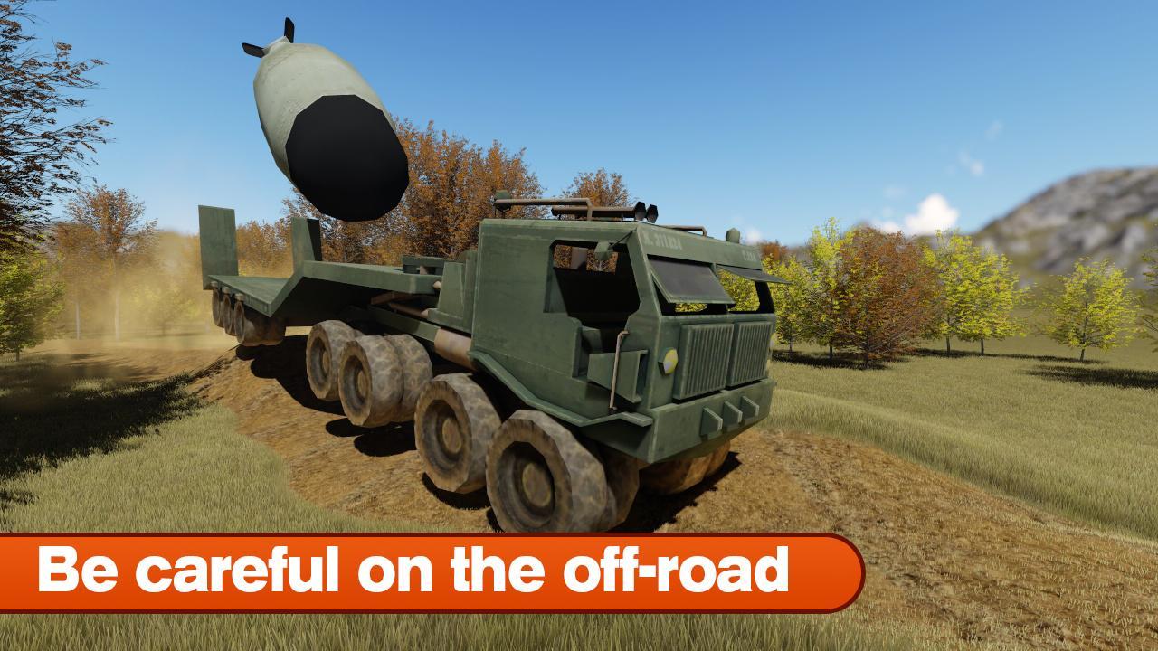 Steiler Hang und der Offroad werden Sie und den Bombentransporter nicht beängstigend! Liefern Sie die Bombe an die Basis! Das Leben hängt von Ihren Handlungen hinter dem Steuer eines Militärträgers ab!