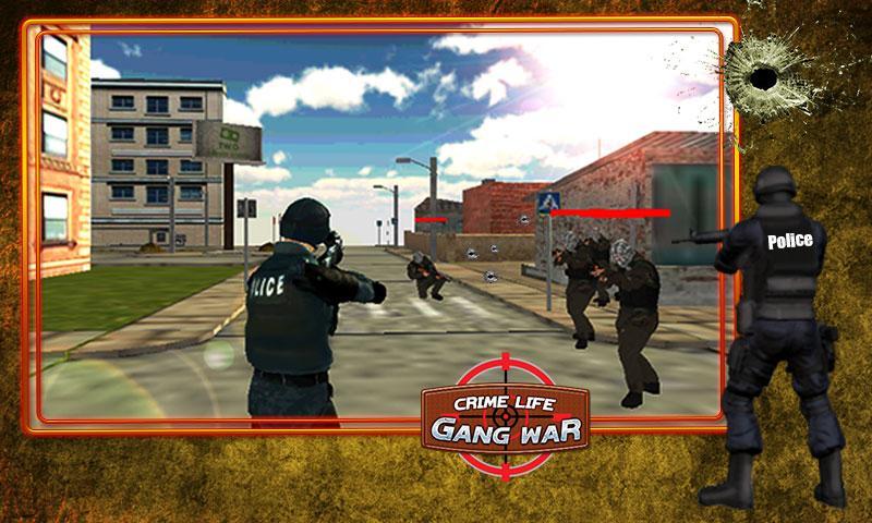 Ein Bandenkrieg zweier populärer Kriegsgruppen, der aus unterschiedlicher Anzahl von Terroristen auf verschiedenen Ebenen besteht. Wenn Sie (der Polizist) zu dem Ort greifen, an dem der Bandenkrieg beginnt, greifen die Terroristen beider Gruppen auf Sie an.