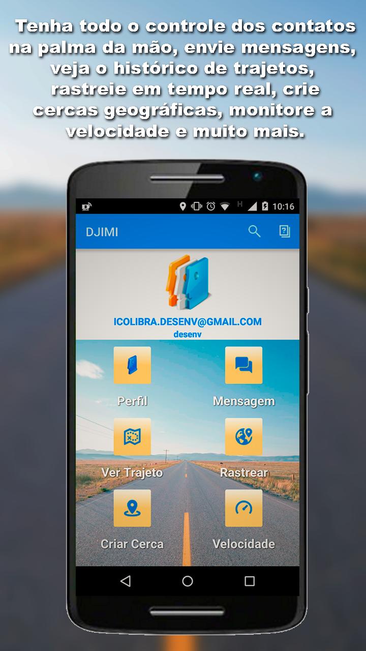 The DJIMI is a smart tracker application that operates SMARTPHONES and TABLETS ANDROID devices and can be used as a tracker of vehicles, people or fleets using GPS technology. The DJIMI enables you to keep your contacts connected with you at any time, with full security and accuracy.
