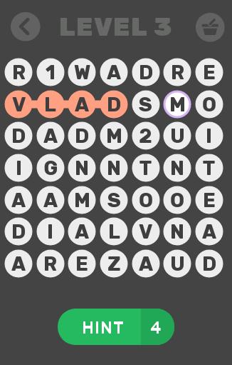 Ein "Finden Sie das Wort", bei dem die Namen berühmter YouTubers wie Selly, Vlad Munteanu oder Dorian Popa versteckt sind.