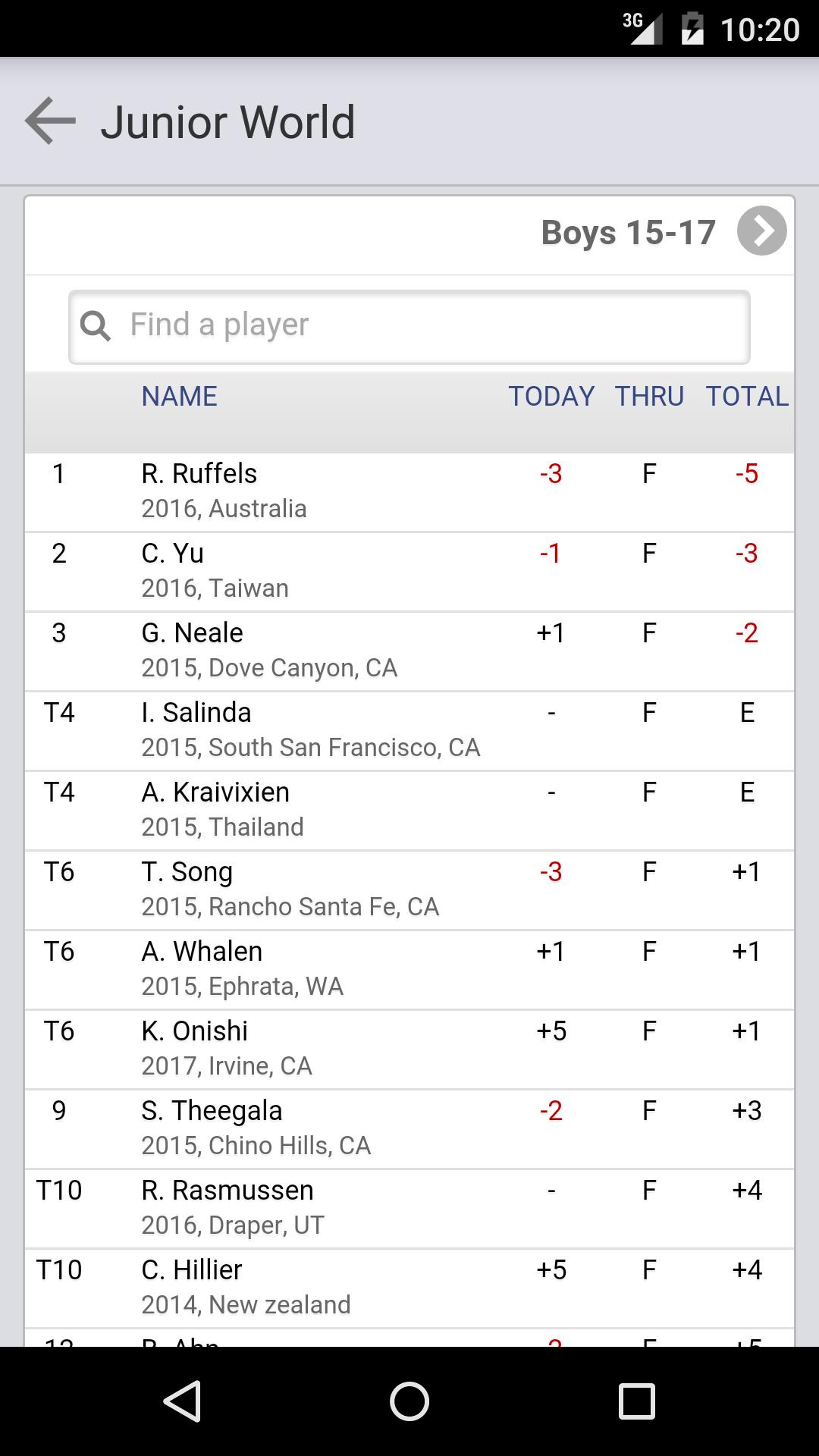 Die IMG Academy Junior World Golf Championships App für Android.