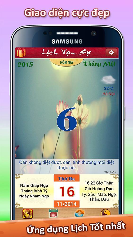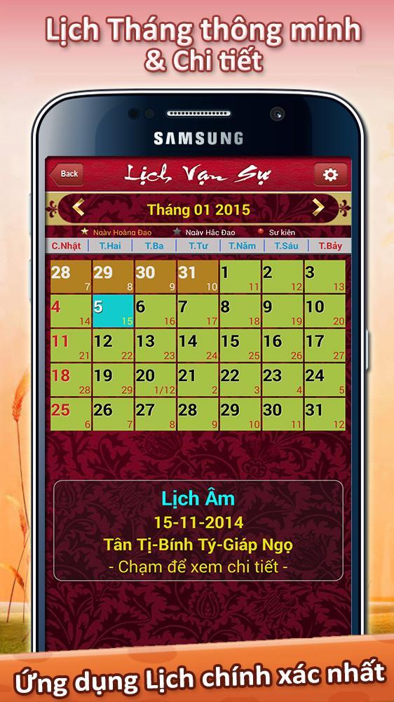 Van Tri Calendar hilft Ihnen, den Mondkalender nachzuschlagen, der Kalender ist bequem und schnell. Gleichzeitig ist LVS2019 auch ein CAM Lang -Buch über Horoskope von 12 Stiften, Zodiaken, traditionellen Gebeten und begleitet Sie während des gesamten Glücks und Erfolgsjahres.