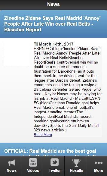 Mit dieser inoffiziellen Fan -App Zugriff auf Videos und soziale Medien über den echten Fußball. Informieren Sie sich über die neuesten Fußballtransfernachrichten und die neuesten Geschichten über die aktuellen Spieler wie Cristiano Ronaldo und Gareth Bale.