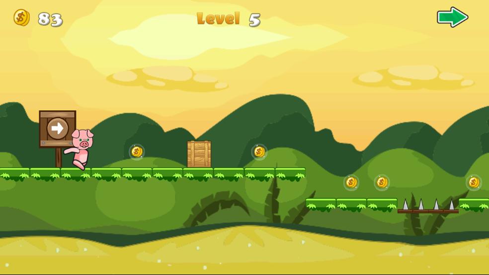 Pig Running Adventure macht süchtig und lustiges Abenteuerspiel mit Sprung und Laufen.
