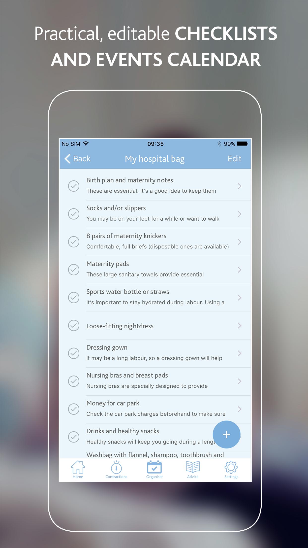 • Bereitete, bearbeitbare Checklisten, die Ihnen helfen, mit Ihrer Hebamme zu sprechen, Ihren Geburtsplan zu schreiben, Ihre Krankenhausbeutel zu packen, Baby-Essentials und mehr zu kaufen