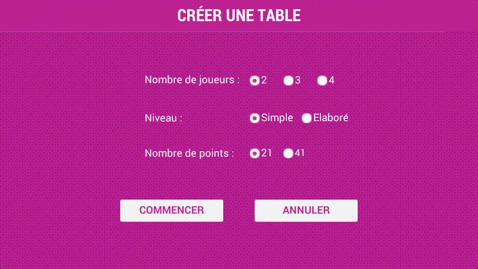Das Spiel wird auf zwei, drei oder vier Spielern gespielt. Jeder Spieler spielt einzeln, selbst für Spiele mit 4.