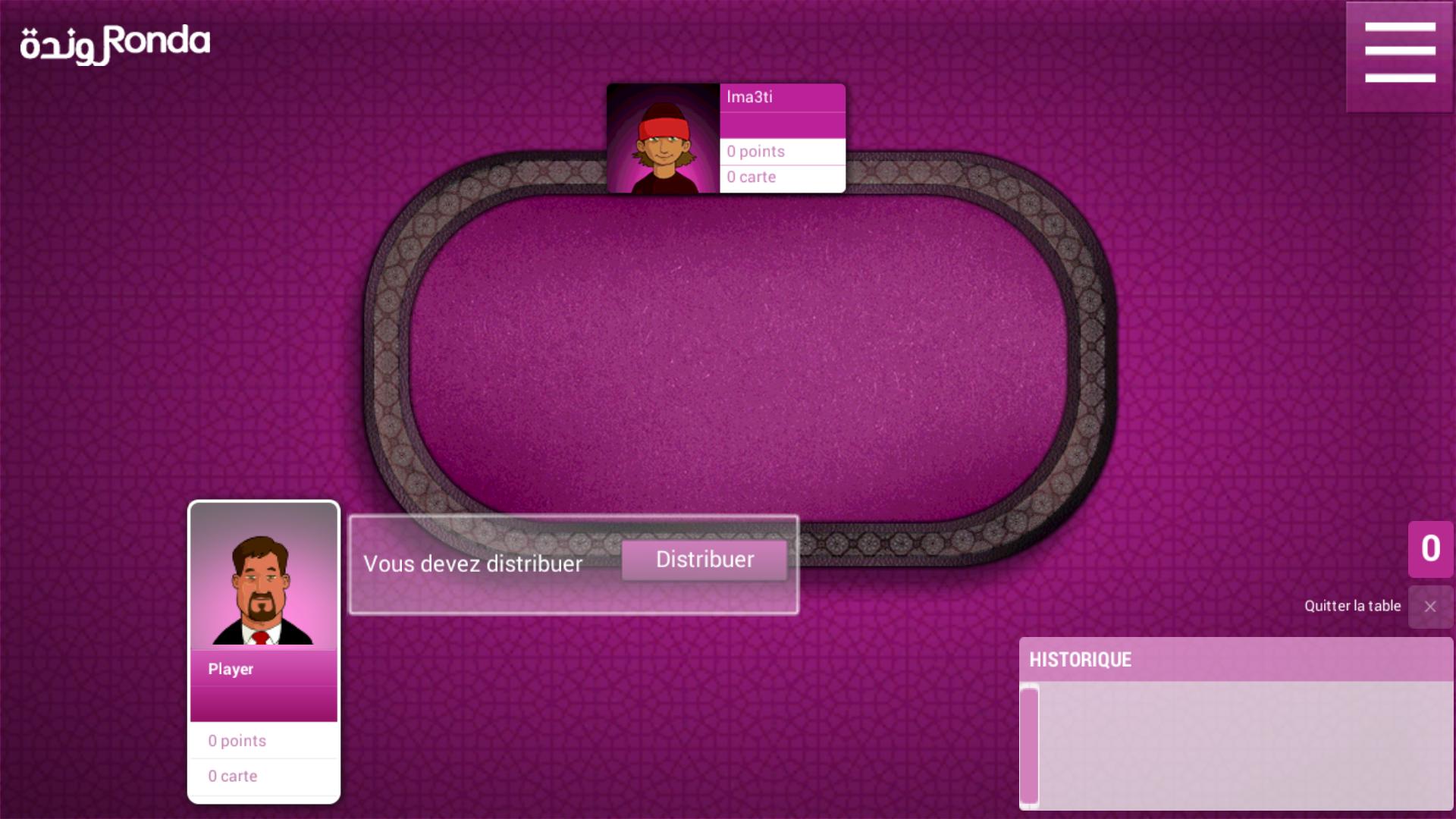 Ronda ist ein Spiel marokkanischer Karten, das mit spanischen Karten gespielt wird. Es ist ein Spiel mit 40 Karten mit 4 Farben: DHEB (Gold), Khel (Stick), Copas (Schnitt) und Sbada (Schwert).