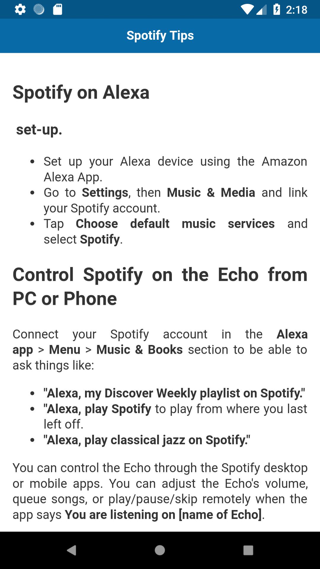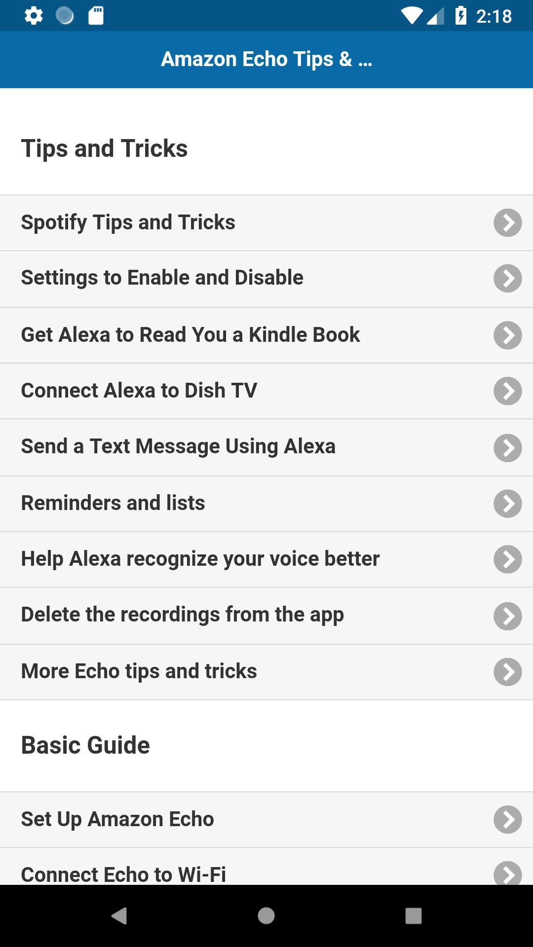 Lernen Sie wichtige Tipps und Tricks für die Verwendung Ihres Amazon Echo effizienter. Aus dieser App können Sie so viele Tipps und Tricks erhalten, einschließlich Setup Amazon Echo, Echo -Hardware, Alexa Voice Remote, Echo Light Rings Code und vielem mehr. Laden Sie diese kostenlose App herunter und erkunden Sie Ihr Echo.