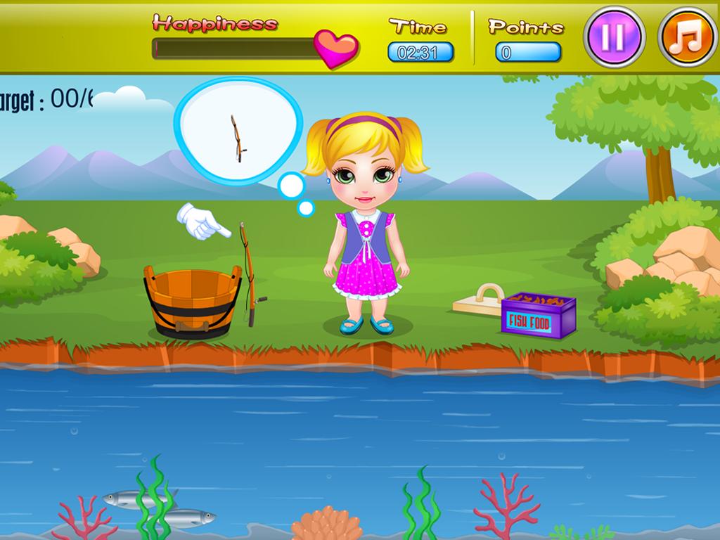 Ayude a los niños juguetones a organizar el campamento, tomar su pesca y justo en la hora de lanzamiento, sirva a todos sus comidas favoritas.
