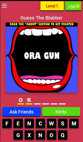 Blabber Mouth es una aplicación de juego de adivinanzas de palabras y frases gratuitas diseñada como una forma divertida e interesante para adivinar palabras, personas y frases! Disponible tanto en el teléfono Android como en la tableta.