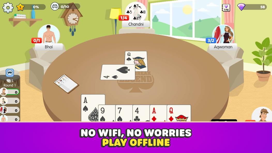 Anteriormente conocido como Callbreak Legend y Call Break Premier League (CPL), ¡este juego ahora es más grande y mejor! Ya sea que esté buscando modo multijugador para desafiar a los jugadores en línea o jugar sin WiFi, Callbreak by Bhoos ofrece algo para todos.