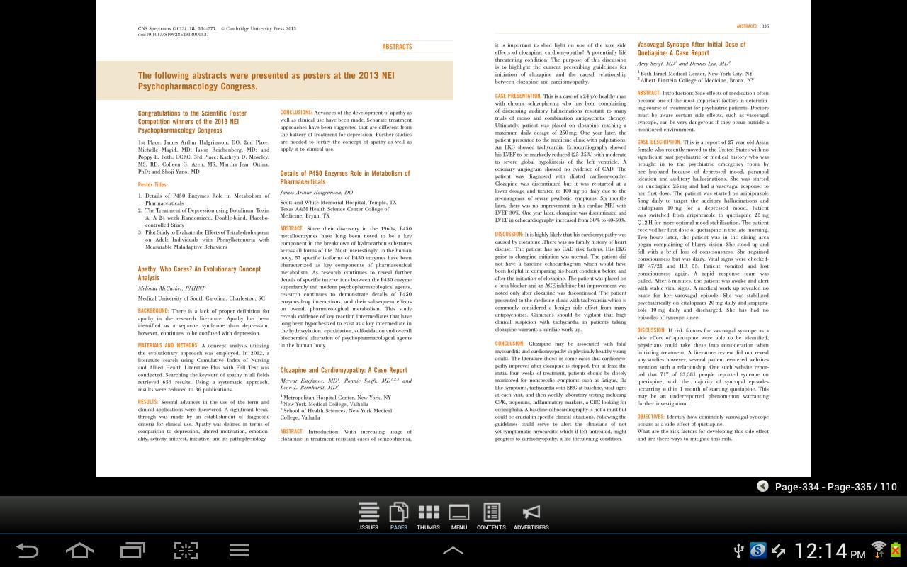CNS Spectrums se unió al programa Cambridge en 2012. CNS Spectrums es un índice Medicus/Medline Journal diseñado para cerrar las necesidades de información clínica de psiquiatras y neurólogos. El editor en jefe, el Dr. Stephen M. Stahl, formará una nueva junta editorial y desarrollará los objetivos y el alcance de la revista para cerrar completamente las necesidades de información clínica de psiquiatras y neurólogos.