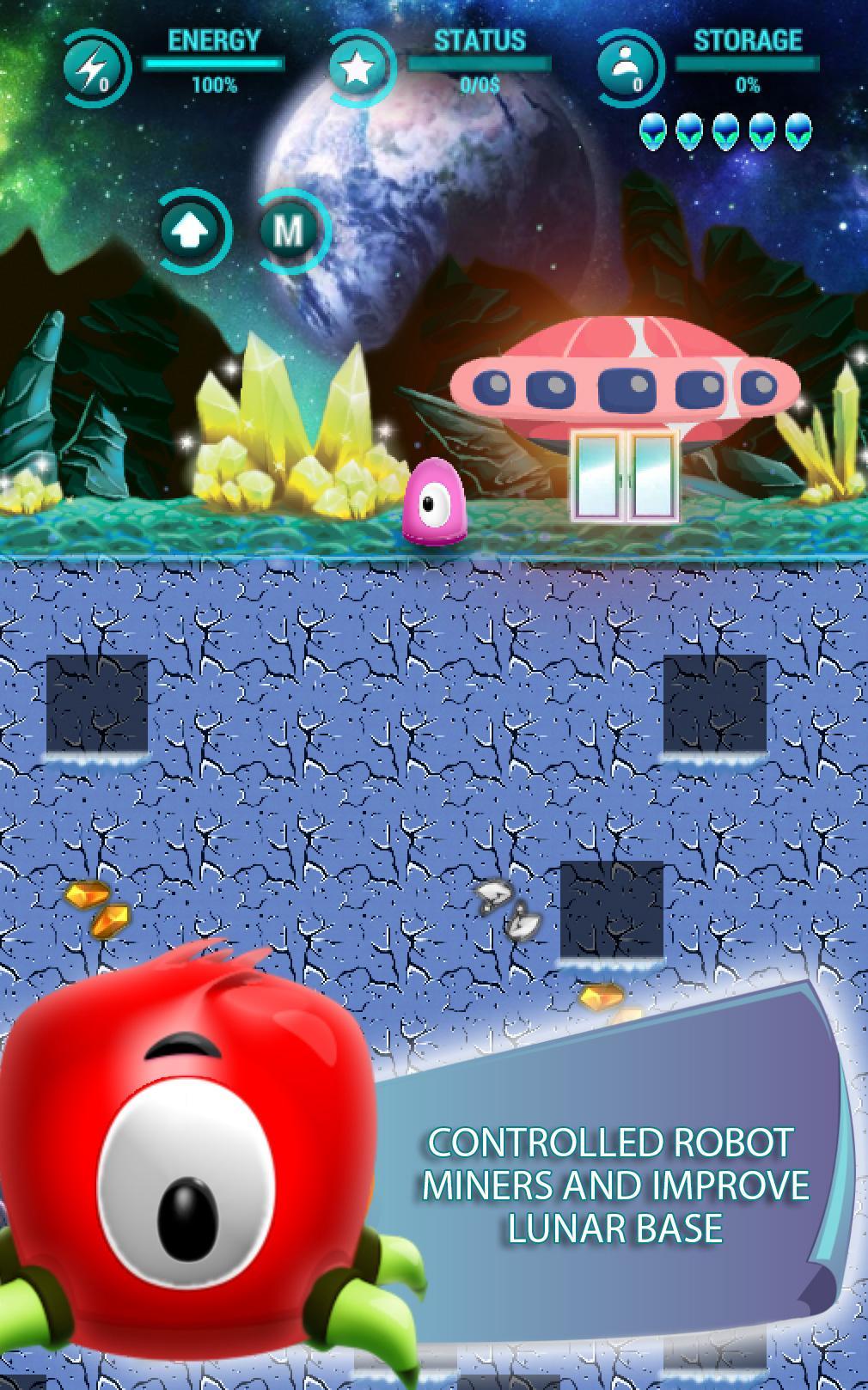 2016. Earthlings comparten recursos en su planeta, mientras que los extraterrestres extraen minerales en la luna. Sea uno de los mineros de recursos minerales, vinculado a un avatar y extrae minerales. Construya viviendas en cráteres lunares, superando a los rivales, aprendiendo a los mineros artesanales. Extraer minerales, es un arte, especialmente en el espacio donde puede ser hostil a cada pieza de tierra. Vender recursos minados y actualizar, Robot Digger. Para haber estado disponibles para la nueva mina, encuentre todos los cráneos de cristal ocultos en los Cráteres de la Luna.