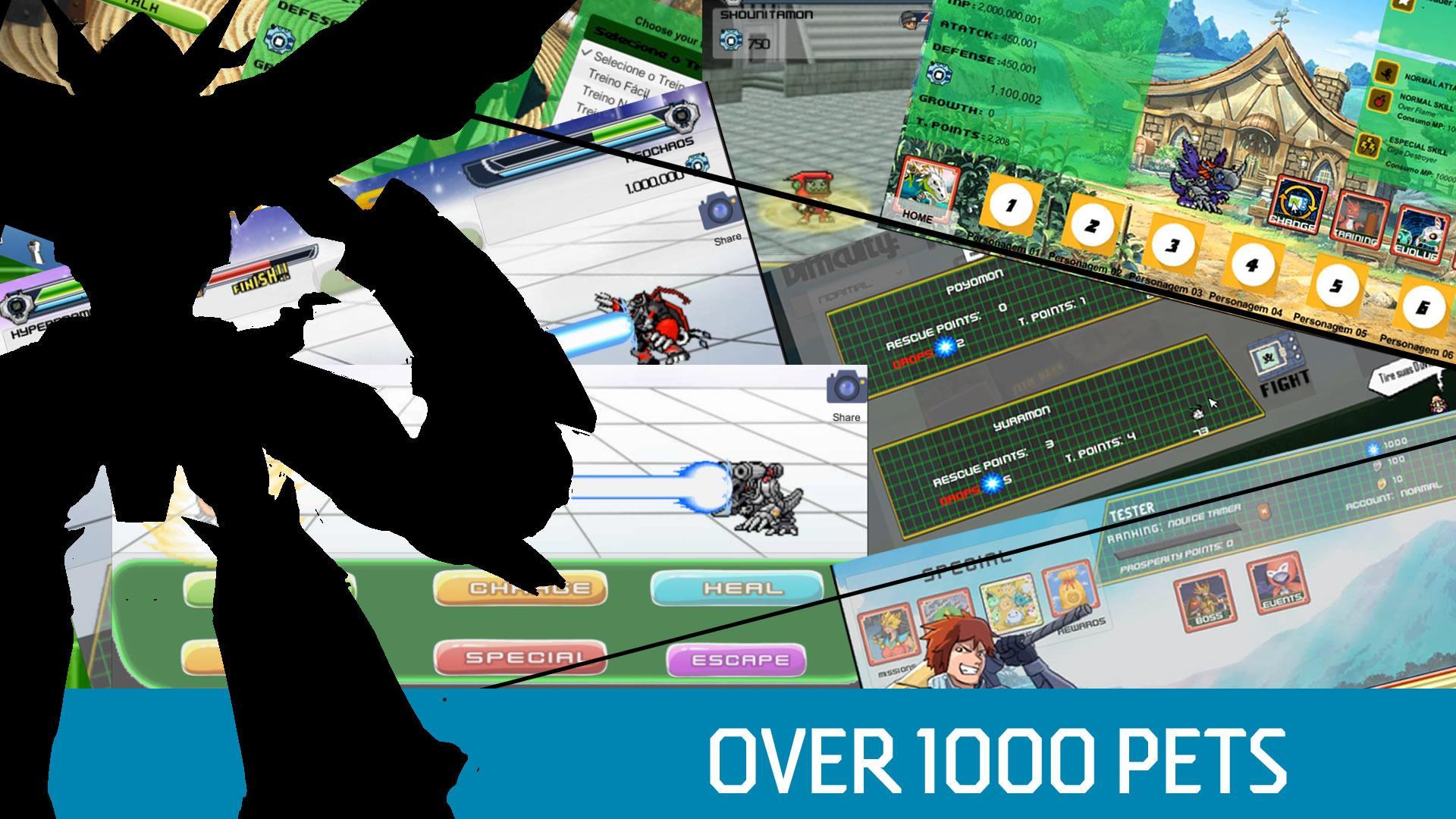 ¡Crea tu propio equipo con tus mascotas favoritas! En Digital Battle Pets puedes tener más de 1000 mascotas diferentes. Usa los huevos para obtener nuevos personajes.