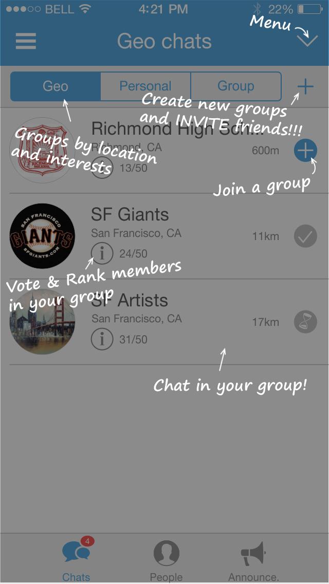Facy - Grupos basados en interés y ubicación sin compartir números de teléfono