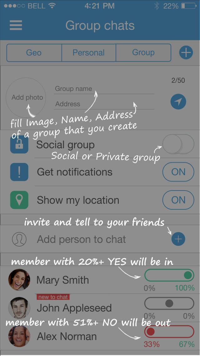 - Si un miembro tiene un 51% de votos negativos, será eliminado de un grupo