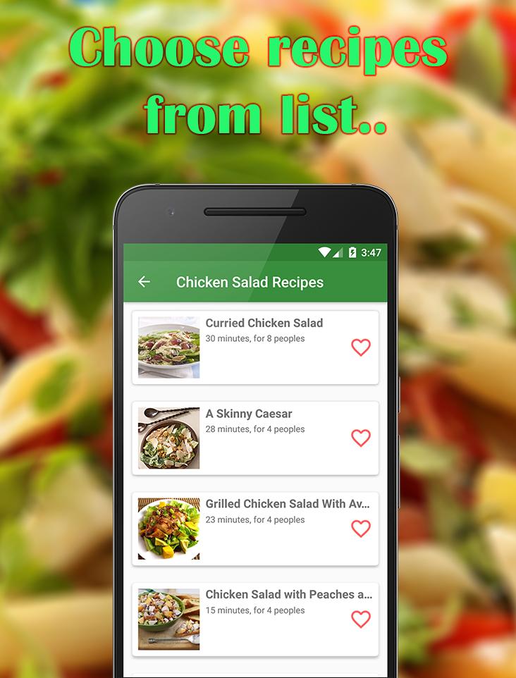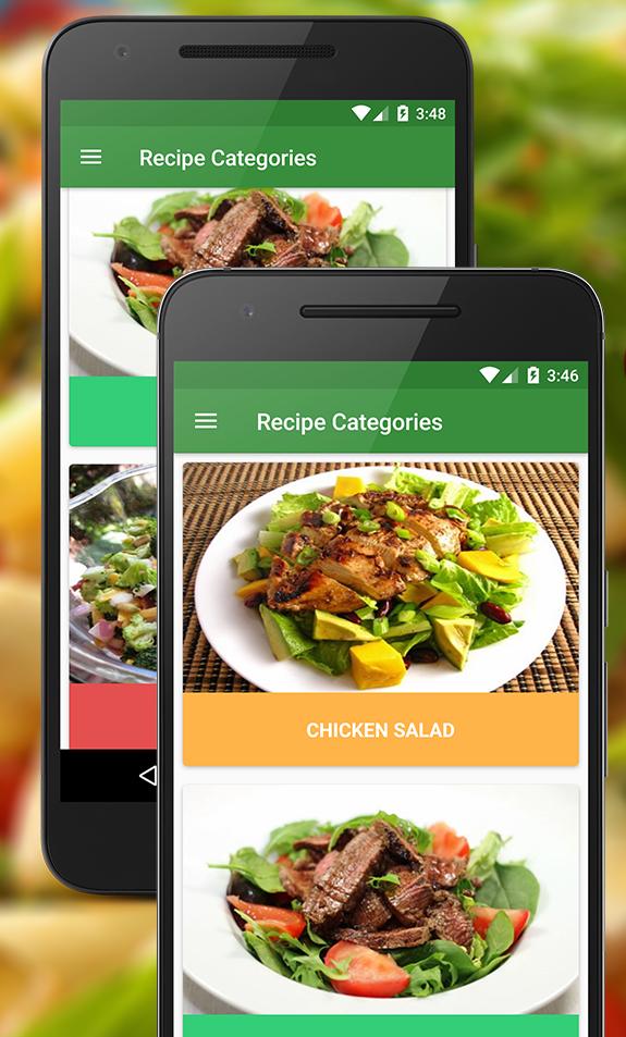 Hay muchas aplicaciones de recetas de ensalada en Play Store. Esta aplicación de ensalada es diferente. Clasea ensaladas en algunos grupos más atractivos. Como receta de ensalada de pollo, receta de ensalada de carne, ensalada de pescado, receta de ensalada de pasta, receta de ensalada de frutas, recetas de ensalada de vegetales, etc. Cada categoría tiene muchas recetas deliciosas incluidas. Puede mantener su plan de dieta y dieta siguiendo esas instrucciones de recetas de ensaladas.