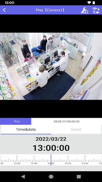 Grabado en una grabadora (grabación de grabadora) con el tipo de dispositivo como cámara, grabadora o monitoreo remoto. Buscar video grabado por fecha, hora o evento y reproducción. (La búsqueda de eventos está disponible solo en el momento de la reproducción de grabación de SD).