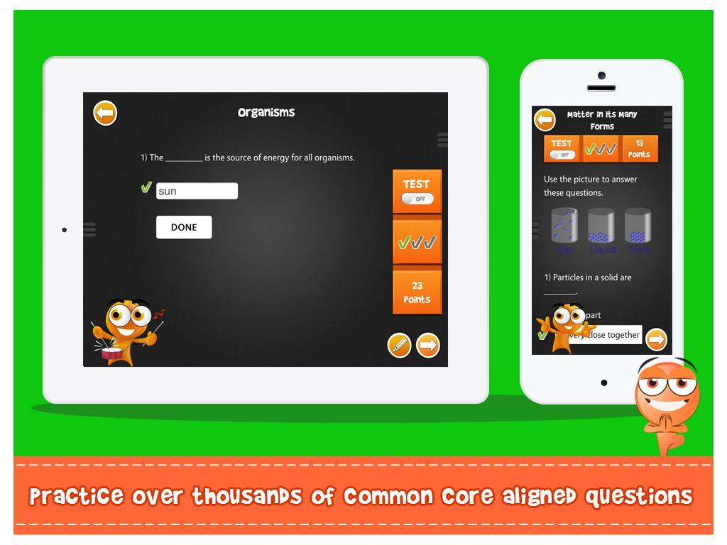 Con más de 1,652 actividades, iTooch 5th Grade Science es una forma divertida de practicar y aprender ciencias para los alumnos de quinto grado.