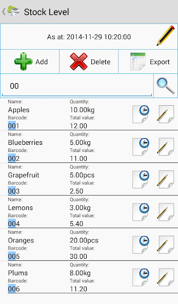 - Edición de la lista de elementos, atribuyendo códigos con un escáner