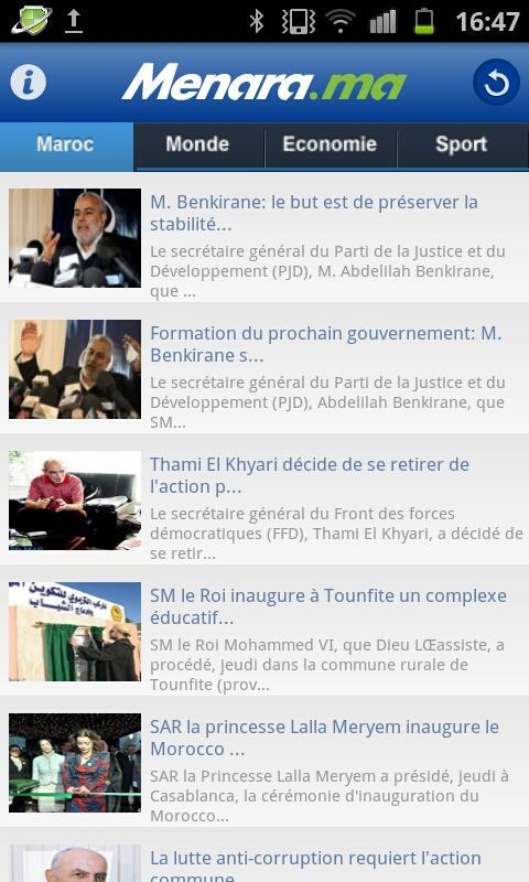 Acceso a noticias y programas en línea nacionales e internacionales de los principales cines en Marruecos a través de un acceso simple y rápido en lengua francesa y árabe clasificada por sección: Marruecos, Mundo, Economía, Deportes, Ciencias, Tecnologías, Cultura, Inusual, People and Cinema.