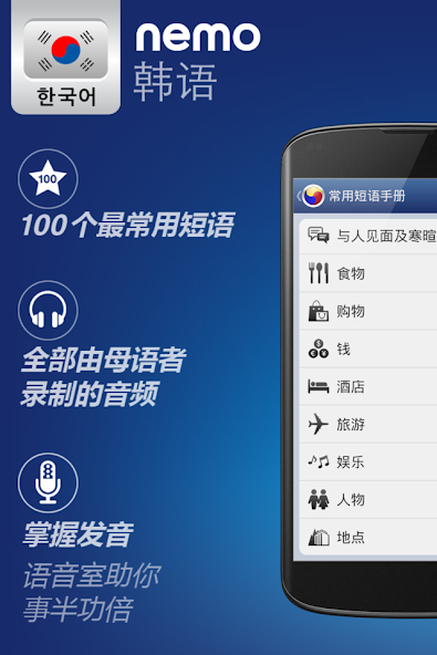 Nemo está diseñado para comenzar a hablar las palabras más útiles en coreano de inmediato y con confianza. Con millones de descargas de todo el mundo, NEMO ahora está disponible para teléfonos y tabletas Android.