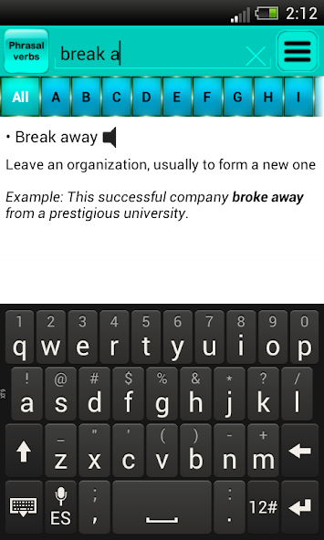 Lista completa de Phrasal verbs . Cada verbo tiene su significado, un ejemplo y su pronunciación.