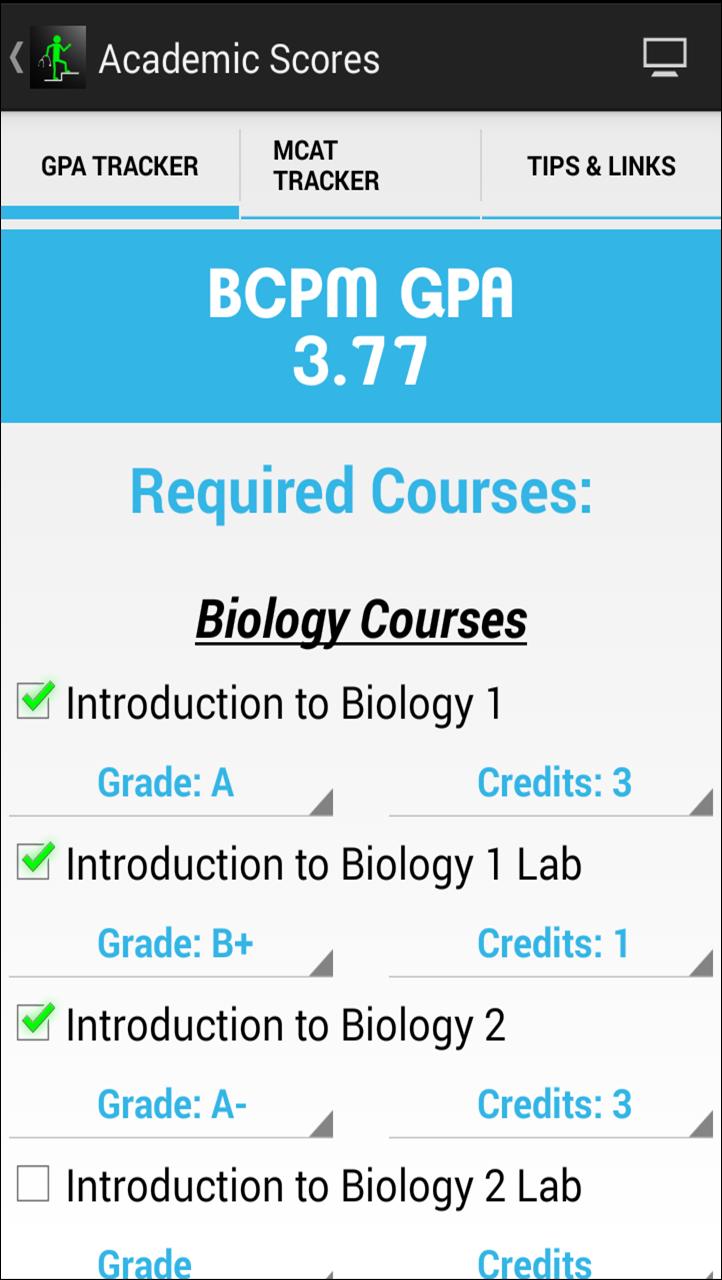 3. Cience (BCPM) Calculadora y rastreador de GPA: le permite rastrear fácilmente sus clases previas requeridas, clases de ciencias adicionales y calcula automáticamente su GPA AMCAS BCPM (Ciencia) para usted.