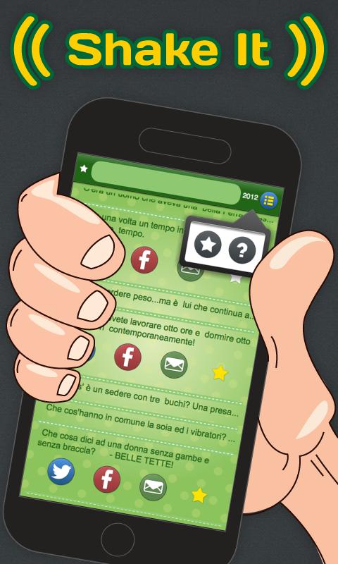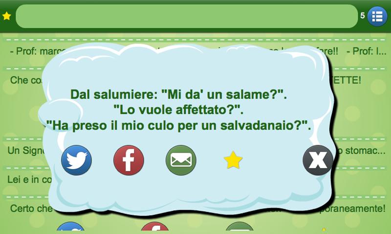 ¡Este enorme conjunto de más de 2 000 llamados Scherzi e Barzellette italianos debe ser la colección más grande jamás lanzada en el teléfono móvil! Es posible marcar las inundaciones como "favoritos" y filtrar en un texto. La aplicación recuerda la configuración, incluida la posición entre las sesiones deslizantes para su conveniencia. La aplicación es, después de que la "actualización" realice los anuncios de compra en la aplicación desaparecen y puede compartir estos y lazones de Twitter, Facebook o enviarlos por publicación a la dirección.