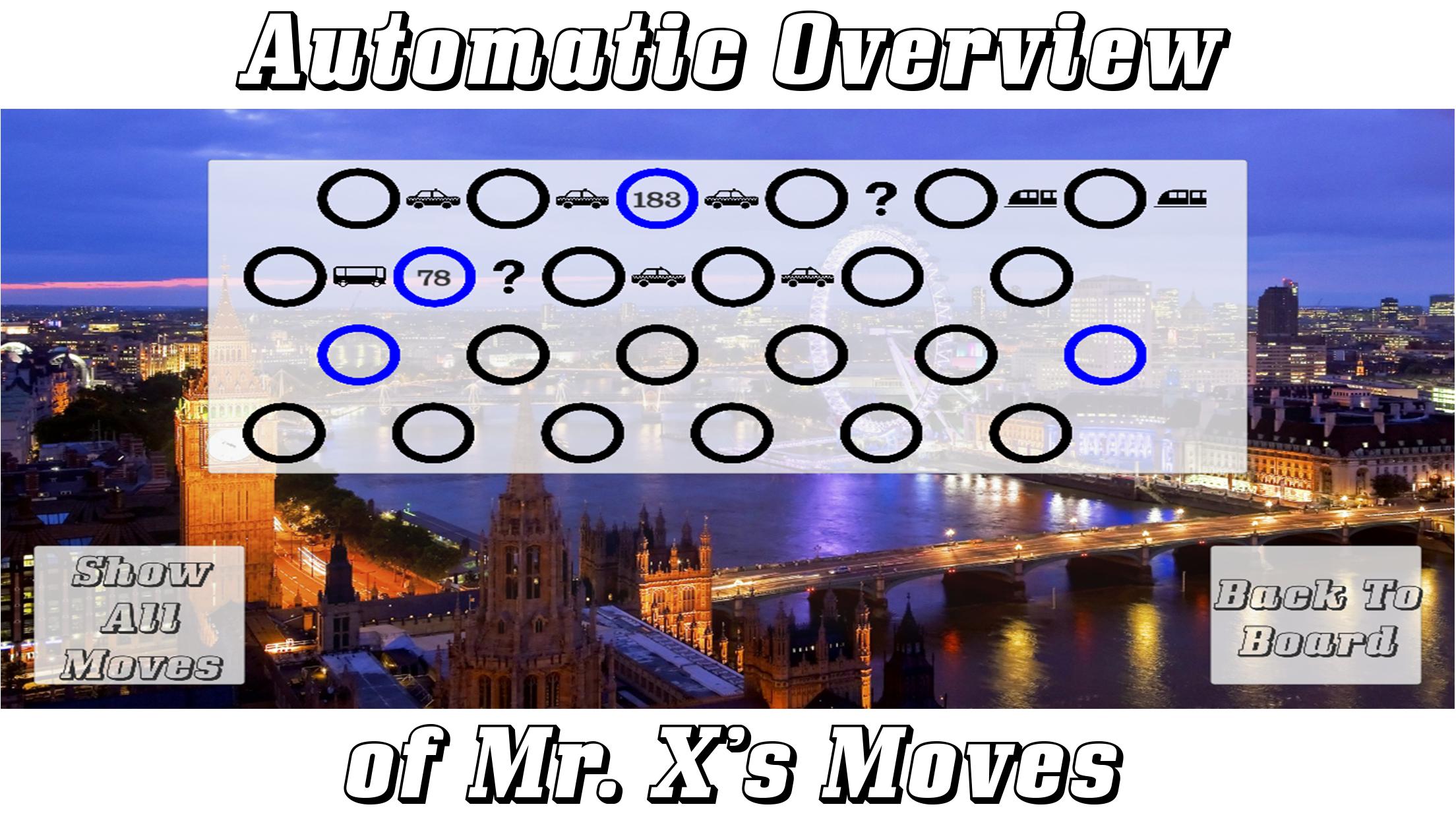 ¡Muestra los movimientos válidos para un jugador determinado para que los recién llegados nunca hagan un error! No es más necesidad de pluma y papel para registrar los movimientos, solo use esta aplicación para dar una descripción general de los ojos de las aves para el agente oculto.