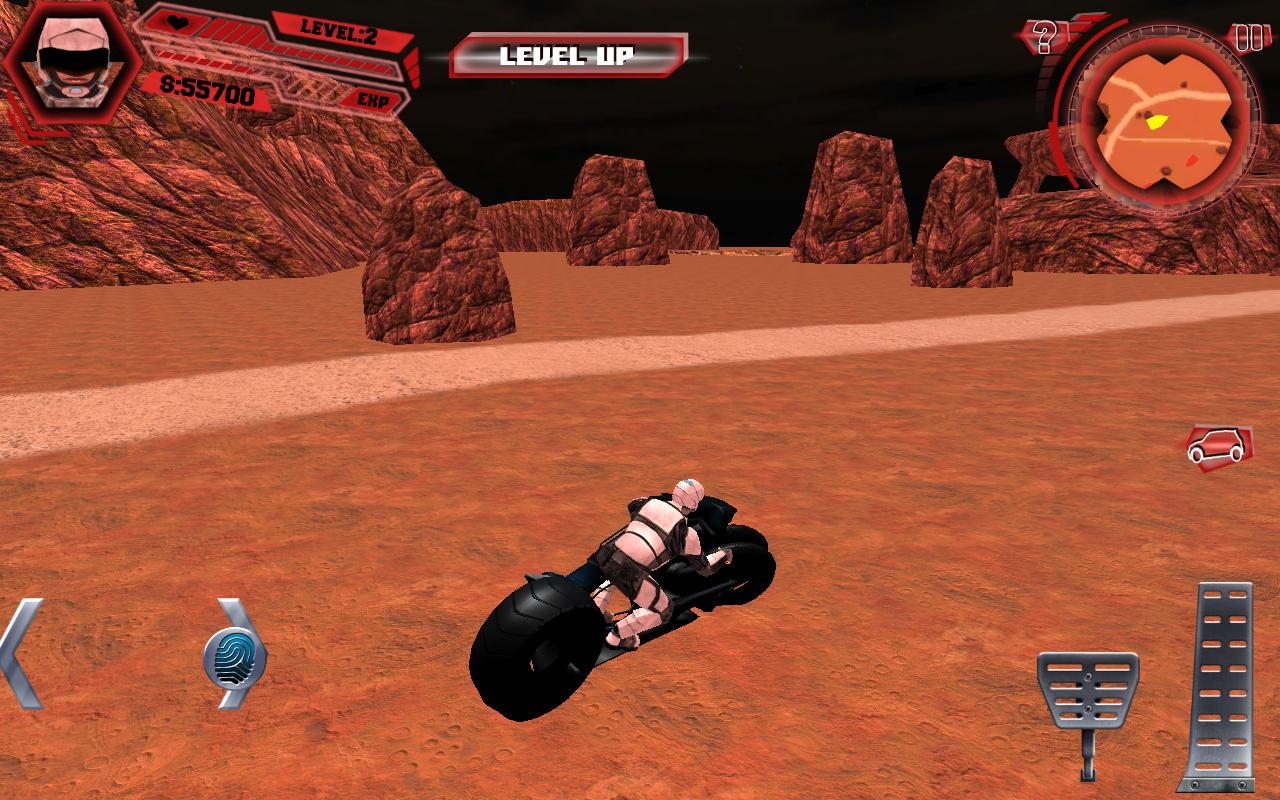 Misiones completas para grandes recompensas. Mata a los extraterrestres y monta las naves espaciales. Monta las bicicletas neo sobre los terrenos rocosos.