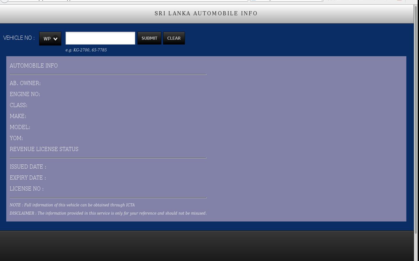 Puede encontrar información del vehículo en Sri Lanka que se registró en DMT