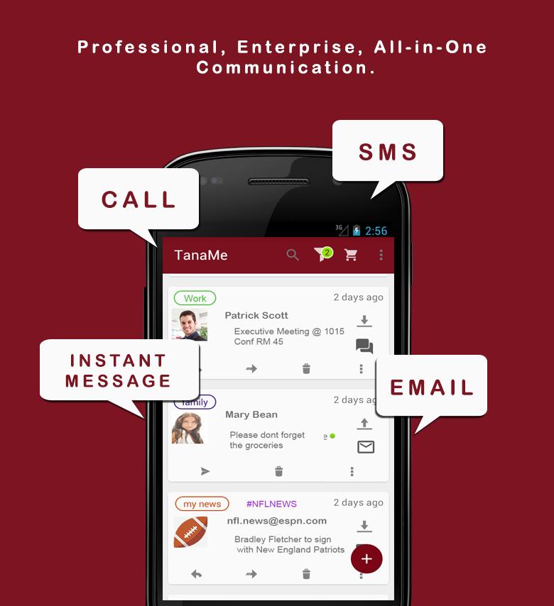 1 clic de navegación: llame, mensaje instantáneo, SMS o correo electrónico sin problemas desde la aplicación TanaMe a través de su cuenta o su operador local.